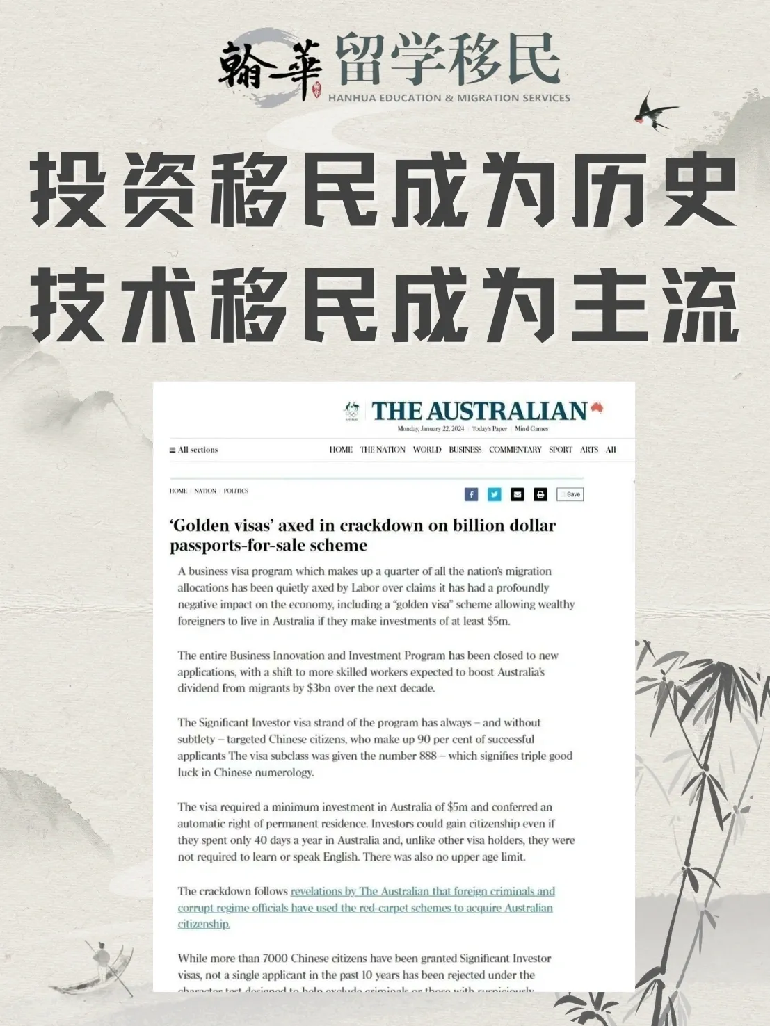 投资移民成为历史,技术移民成为主流 24 12 月, 202519 3 月, 2024 作者 admin 突发‼️ 澳大利亚政府发布声明,宣布188类商业投资移民签证取消,正式结束该类别。政府强调,新政策旨在更加注重 … 阅读更多